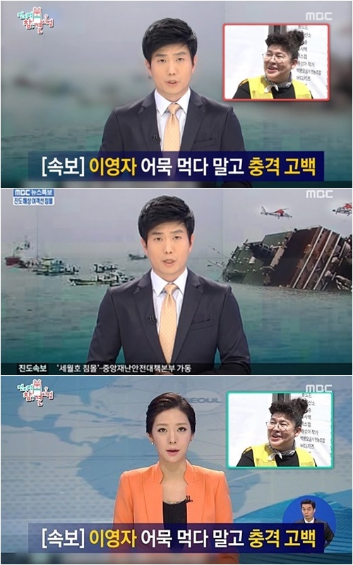 한편 지난 5일 방송된 '전지적 참견 시점'은 개그우먼 이영자의 어묵 먹방을 뉴스 형식으로 내보내는 중에 세월호 참사를 보도하는 뉴스 장면을 인용했다. 해당 장면은 2014년 4월 16일 세월호 참사를 보도하는 남자 앵커와 여자 앵커의 장면이 인용된 것으로 확인됐다. 과거 온라인 커뮤니티 일간베스트(이하 일베) 회원들은 '어묵'이라는 단어를 사용해 단원고 세월호 희생자를 모욕하면서 충격을 안겼고, 동시에 사회적으로 공분을 샀던 바다. /nyc@osen.co.kr