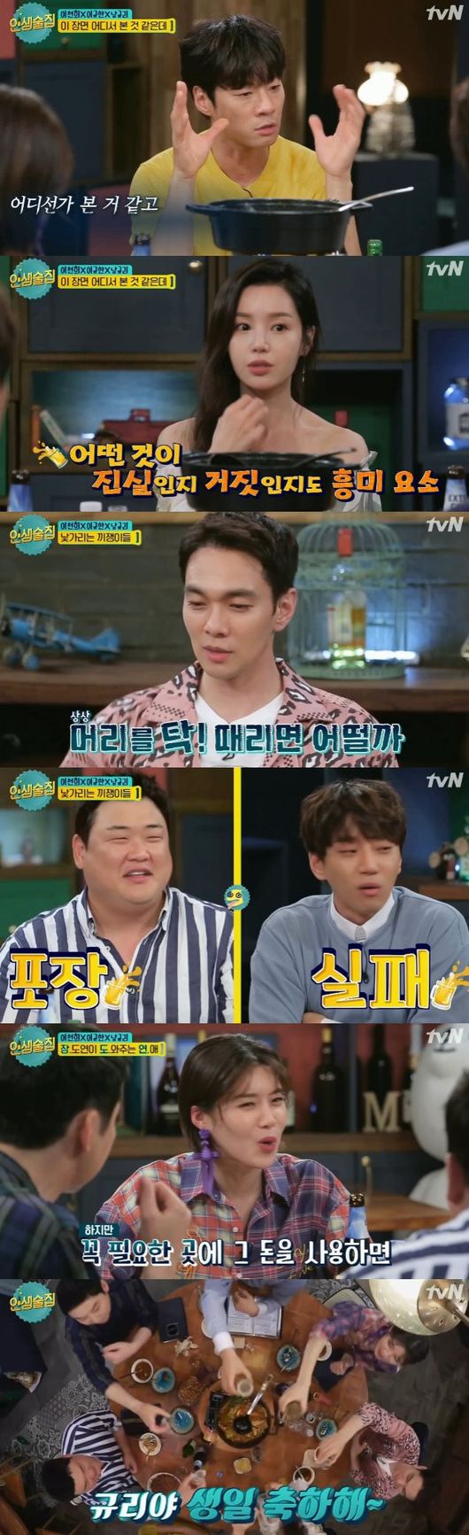 10일 방송된 tvN 예능 '인생술집'에서는 영화 '데자뷰'(감독 고경민)로 뭉친 배우 이천희, 이규한, 남규리가 출연하는 모습이 전파를 탔다.