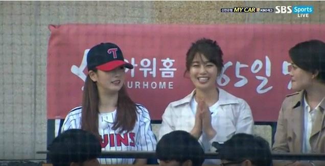 윤보미는 야구를 배우는 예능프로그램에서 정민철 위원에게 투구폼을 배웠다. 또 윤보미는 이날 일본에서 시구 스타로 유명한 이나무라 아미와 함께 잠실구장을 찾았다.