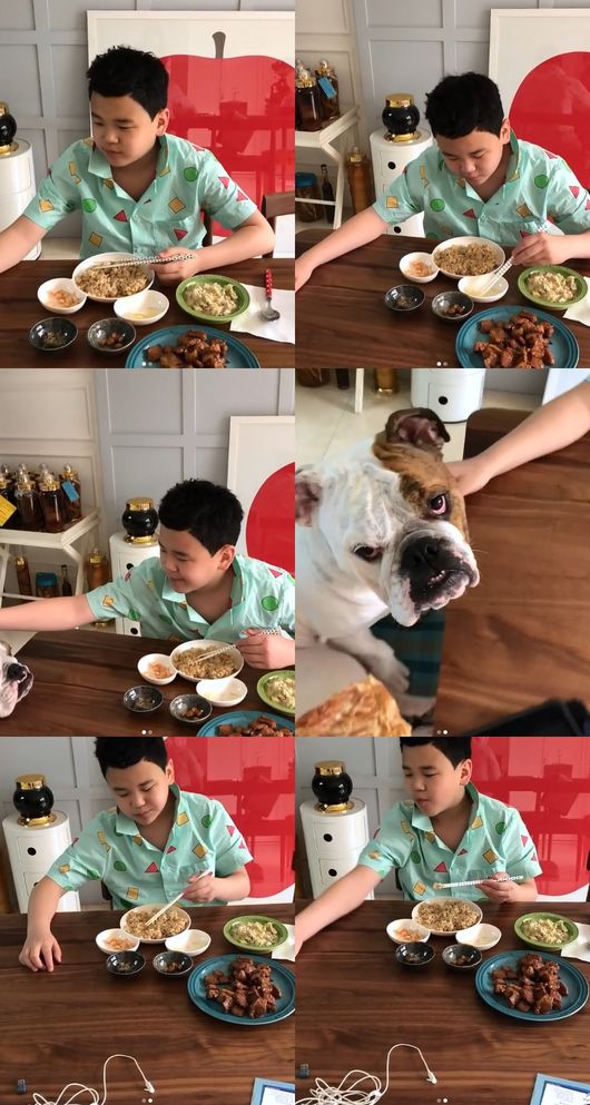 영상에서 윤후는 맛있게 밥을 먹으며 강아지를 만지고 있다. 짱구 잠옷을 입고 있지만 청년 못지않게 폭풍 성장해 보는 이들을 깜짝 놀라게 만들 정도다.
