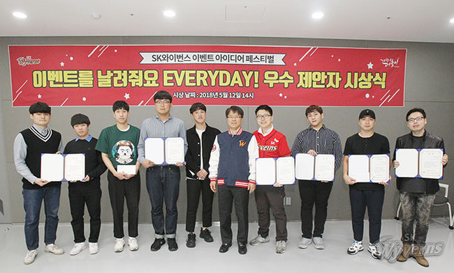 [OSEN=김태우 기자] SK 와이번스가 진행한 아이디어 공모전 ‘이벤트를 날려줘요 Everyday!’ 가 지난 12일 시상식을 끝으로 성황리에 막을 내렸다.