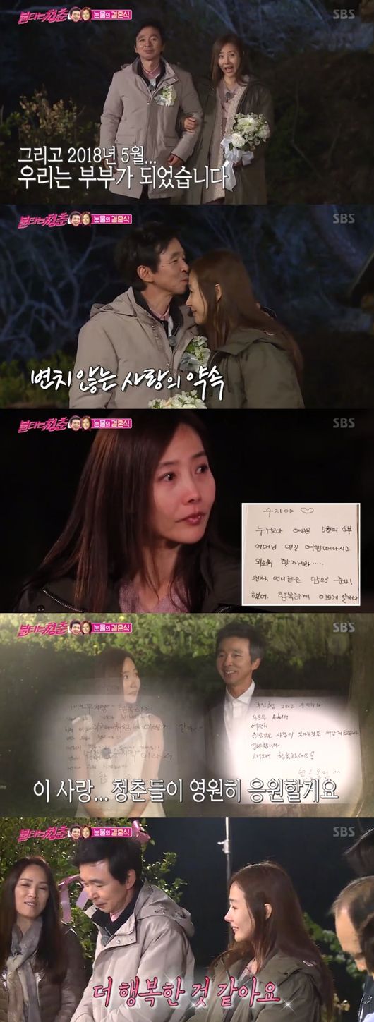 '불타는 청춘' 멤버들이 준비한 결혼식에 강수지는 감동의 눈물을 흘렸다. 예정에 없던 결혼식에 처음에는 당황해하던 김국진과 강수지는 멤버들의 진심어린 마음에 감격해 연신 고마운 마음을 전했고, '불청' 멤버들과 제작진은 두 사람이 행복하게 잘 살기를 바란다는 마음을 드러냈다. 시청자들 마음까지 뭉클하게 만든 정말 감동적인 결혼식이었다.