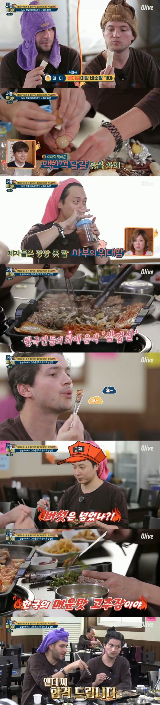 하지만 이는 시작에 불과했다. 앤디는 그건 에피타이저일 뿐이라며 알렉스와 토마스를 데리고 화덕으로 갔다. 5초간 삼겹살을 초벌해서 식당에 들고 들어가 구워먹는 바비큐 파티였다.