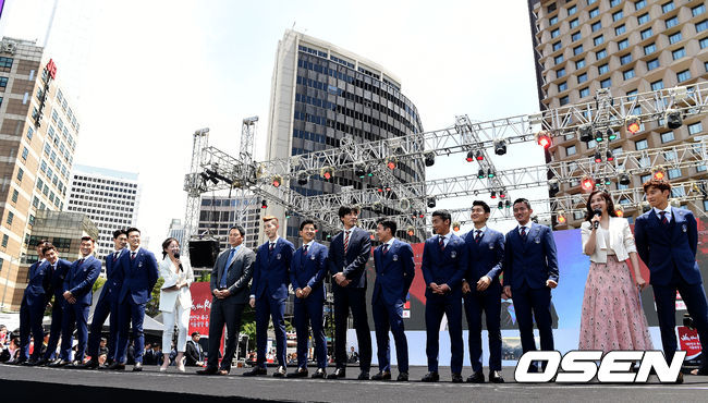 삼성물산은 21일 정오 서울시청 앞 광장에서 열린 ‘대한민국 축구 국가대표팀 서울 광장 출정식’에 참석한 대표팀이 남성복 브랜드 갤럭시가 제공하는 단복을 착용했다고 밝혔다.