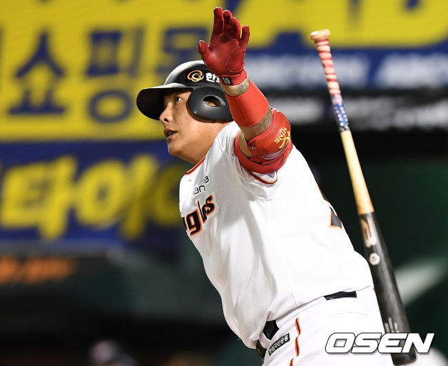 2경기 연속 홈런을 그것도 결정적인 순간 터뜨렸다. 해결사의 면모를 되찾은 것이다. 이로써 김태균은 개인 통산 299호 홈런을 기록했다. KBO리그 역대 10번째 통산 300홈런에도 단 하나만을 남겨놓았다. 의미 있는 대기록의 발자취가 눈앞이다. /waw@osen.co.kr