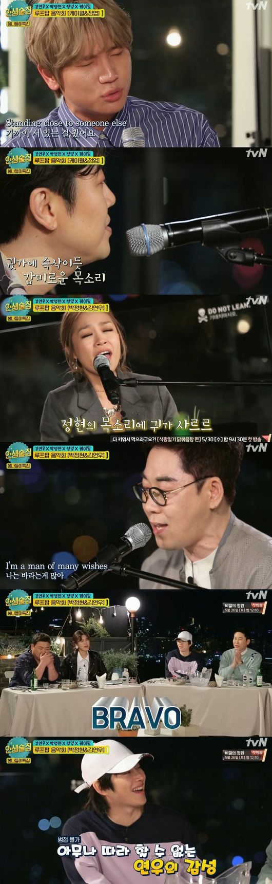 24일 방송된 tvN 예능 '인생술집'에서는 가수 김연우, 박정현, 정엽, 케이윌이 출연해 입담을 뽐내는 모습이 전파를 탔다.