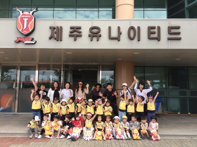 박진포는 25일 아들 박지훈(5)군이 통학하고 있는 중흥S클래스 어린이집 원아 30명을 제주유나이티드 클럽하우스로 초대했다.