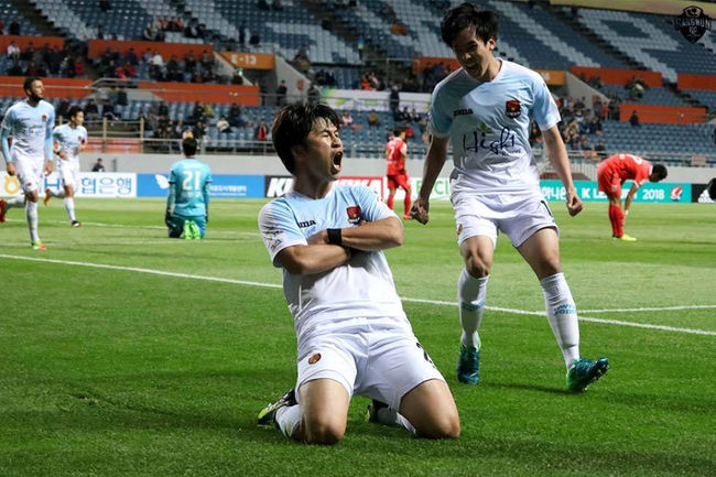 프로데뷔 8년 만에 K리그1 첫 득점에 성공한 강원FC의 정승용.
