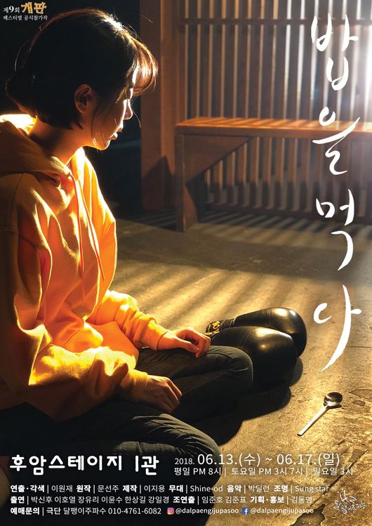극단 달팽이주파수의 창단작품인 연극 '밥을 먹다'(원작문선주, 각색/연출이원재)가 다시 한 번 관객들에게 선보인다. 제9회 개판페스티벌공식참가작으로 선정돼 후암스테이지1관에서 오는 6월13일부터 6월17일까지 공연되는 것.