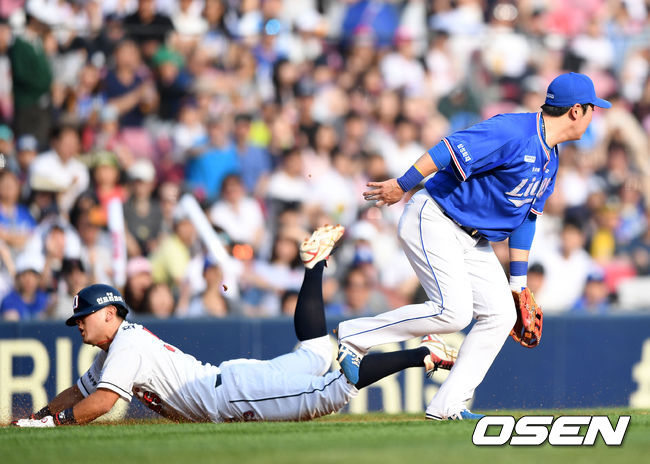 3회초 한 점을 내면서 1-3으로 추격에 나선 3회말에도 아쉬운 수비가 나왔다. 1사 후 김재환의 타석에서 유격수의 실점이 나왔고, 이후 두산은 두 점을 달아났고, 사실상 승부의 추가 두산으로 향했다.