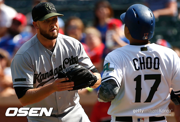 1회말 무사 2루 찬스에서 첫 타석에 들어선 추신수. 그러나 캔자스시티 우완 선발 제이슨 하멜과 풀카운트 승부에서 헛스윙 삼진을 당했다. 6구째 바깥쪽 높은 91.1마일 투심 패스트볼에 배트가 헛돌았다.