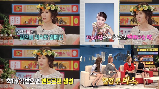 이날 임예진은 녹화 시작부터 폭탄 고백으로 주목을 끌었다. 그녀는 자신이 “학대형 예능인”이라 주장. “사람들이 막대할 때 쾌감을 느낀다”고 털어놔 사람들을 어리둥절하게 만들었다. 이에 그녀는 ‘학대형 예능인’이 된 사연을 설명하다가 김수미의 구박을 받고 좋아하는 모습을 드러내 스튜디오를 웃음바다로 만들었다.