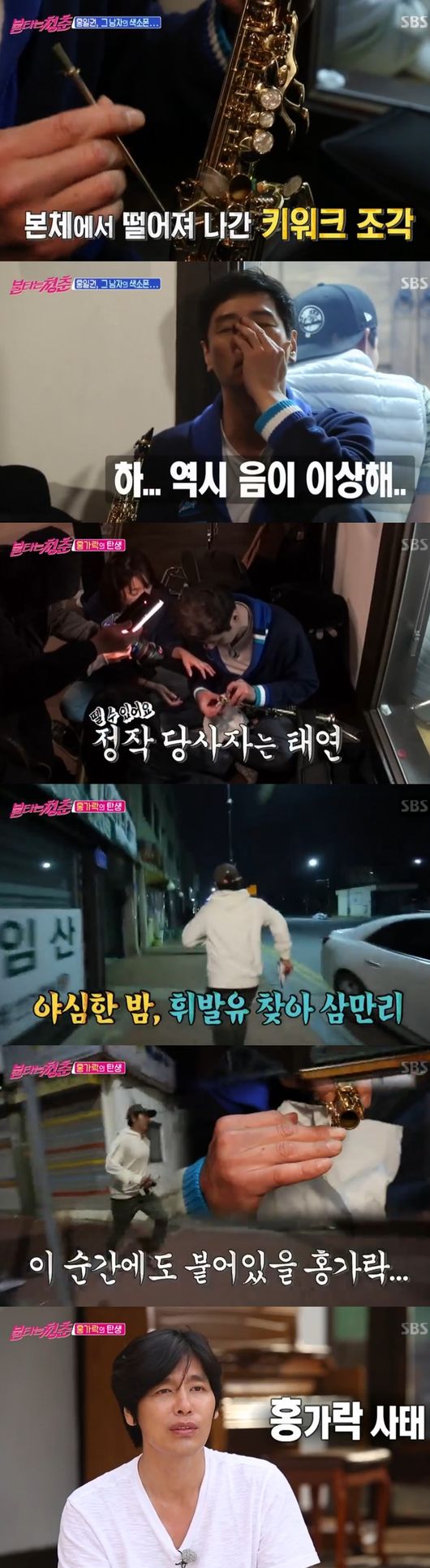 식사 후 홍일권은 출연진들의 요청에 색스폰 연주를 준비했다. 하지만 가방을 열어보니 색스폰은 부러져 있었다. 최성국이 짐을 옮기다 떨어뜨렸고, 그 과정에서 색스폰이 부러진 것. 돌발상황에 당황한 홍일권은 제작진에게 접착제를 부탁했다.
