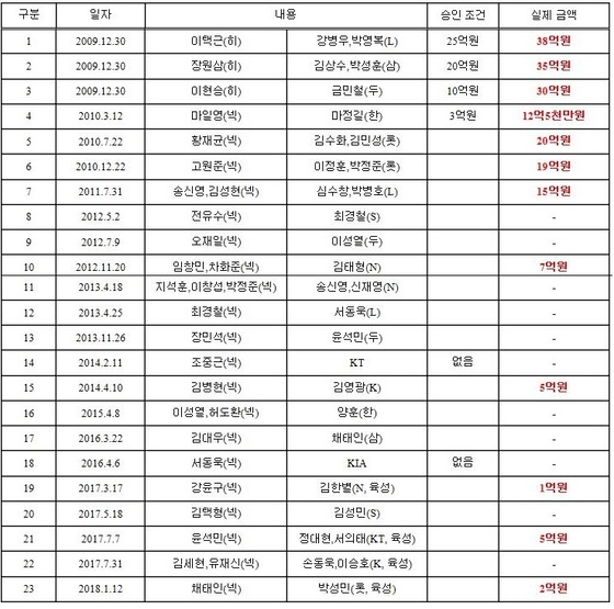 반면 넥센의 현금 트레이드 제안을 거절한 SK는 뒷돈이 없는 것으로 밝혀졌다. 뒷돈 의심을 크게 받았던 서동욱(KIA)과 김세현(KIA)은 실제로는 건너간 돈이 없는 것으로 확인했다.