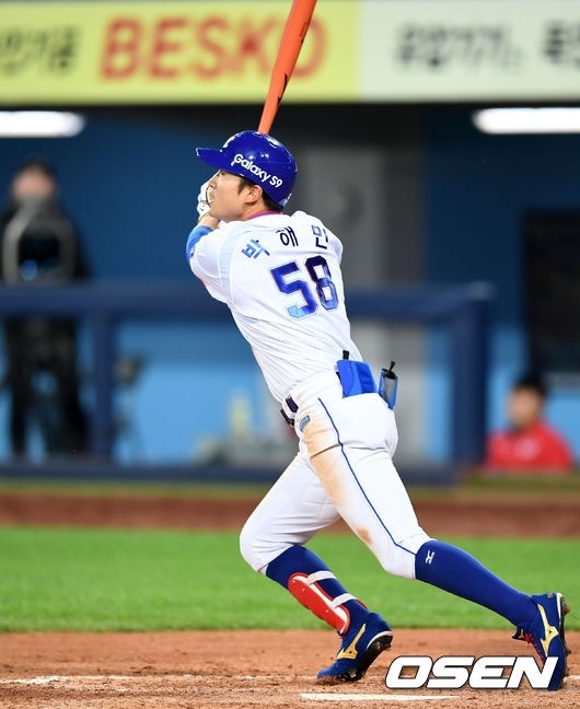 박해민은 1-2로 뒤진 3회 무사 1루서 KT 선발 고영표의 2구째 직구(133km)를 공략해 우중월 투런 아치를 빼앗으며 3-2 재역전을 이끌었다. /what@osen.co.kr