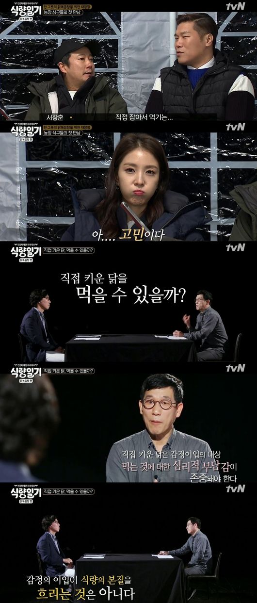 안방에 뜨거운 감자가 던져졌다. '정성스럽게 기른 닭을 잡아먹을 수 있을까'라는 원초적인 문제. tvN 새 예능 '식량일기 닭볶음탕 편' 멤버들은 어떤 선택을 내리려나?