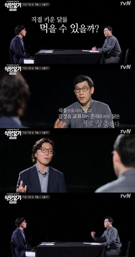 이에 이를 지켜보던 진중권 교수와 최훈 교수가 토론을 펼쳤다. 먼저 진중권 교수는 "식품으로서의 닭과 감정을 교류하는 존재로서의 닭이 충돌한다"며 반대 입장을 보였고, 최훈 교수는 "양계장 닭도 누군가의 어미고 새끼다. 닭은 식량으로서의 존재의 의미가 있다. 관점을 분리해서 먹는 건 이율배반적이다"고 맞섰다.