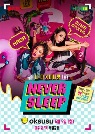 ‘NEVER SLEEP’은 나다와 미나명이 함께 음악과 안무, 뮤직비디오, 최종 공연까지 기획, 섭외, 제작 등 모든 것을 직접 하는 ‘셀프 메이드’ 프로젝트이다. 걸그룹 출신이지만 춤에 대한 자신감이 없던 나다와, 어린 시절부터 가수의 꿈을 가지고 있던 미나명이 춤과 노래에 도전하면서 여태껏 보지 못했던 새로운 모습을 선보일 예정이다.