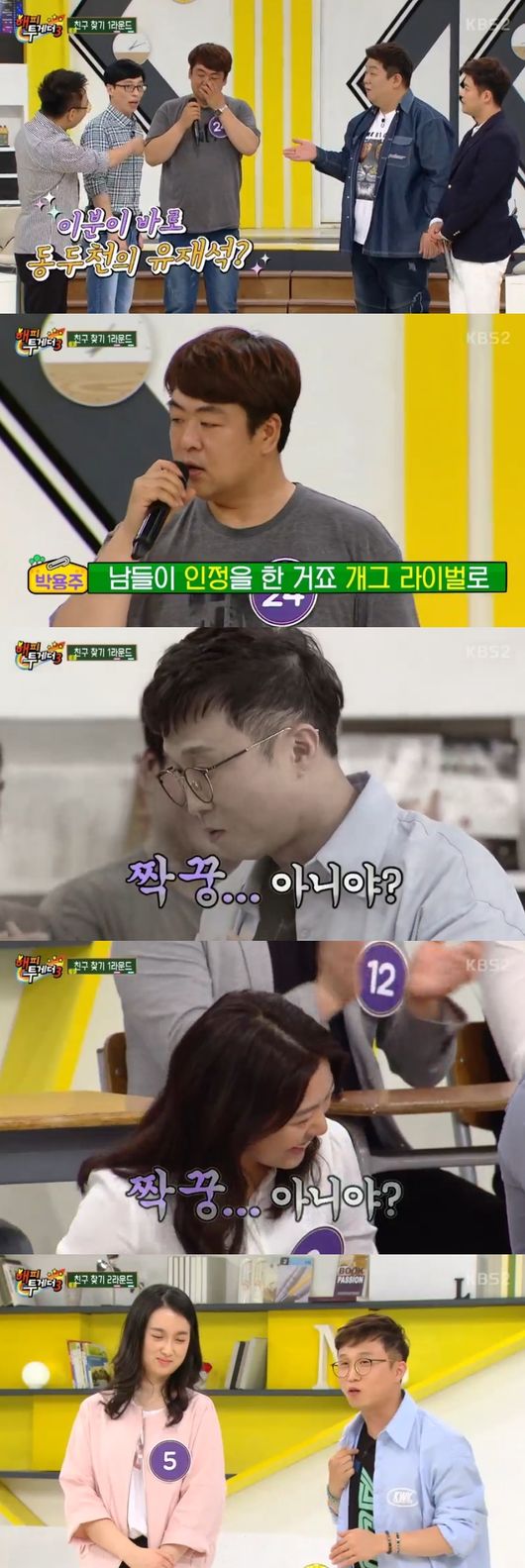 두 사람은 1라운드 친구 찾기에 임했다. 유민상은 개그 라이벌이라고 주장한 친구를 가장 먼저 찾았다. 개그 라이벌인 친구는 "내가 당시 유명했고, 유민상은 듣보잡이었다"고 말했다. 유민상은 "네가 듣보잡이었지"라고 서로 주장했다.