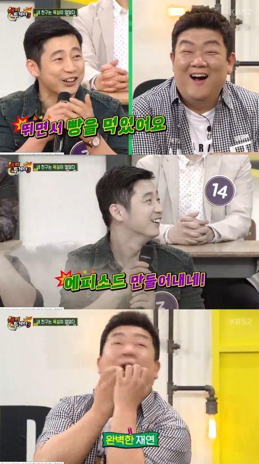 이날 친구들의 유민상 식탐 제보가 이어졌다. 한 친구는 "민상이와 같이 몰려다니던 친구가 6명이 있었는데, 한 친구가 크림빵 3개를 들고 왔다. 이것을 나눠먹을지 3명에게 몰아줄지를 고민하고 있는데, 민상이가 들고 도망갔다. 가다가 잡힐 것 같으니까 뛰면서 3개를 다 먹었다"고 말했다. 유민상은 "기억이 안난다"고 말해 웃음을 유발했다.