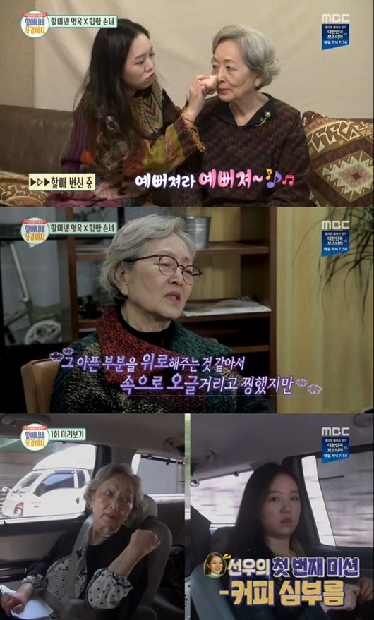 파일럿 방송에서 김영옥을 위해 랩을 선사했던 손녀는 정규 1회에서 할머니의 일일 매니저가 된다. "커피 세 통 사오라"는 할머니의 말을 알아듣지 못하고 실수를 하거나, 밥집을 제대로 찾지 못해 30분을 헤매는 손녀 김선우의 모습은 위기일발 그 자체. 과연 김영옥과 손녀의 일일 동행은 무사히 끝날 수 있을지 눈길이 모아진다.