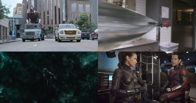 1일 공개된 ‘앤트맨과 와스프’의 스틸사진은 마블의 액션 치트키답게 차원이 다른 액션부터 앤트맨과 와스프의 완벽한 팀 플레이를 담아 관객들의 시선을 사로잡는다. 거대화돼 사람들을 내려다 보고, 트럭 뒤에 매달린 앤트맨의 모습과 반대로 부엌칼을 발판 삼아 달려갈 정도로 작아진 와스프와 앤트맨의 모습을 통해 기발한 액션과 유머를 기대하게 만든다.