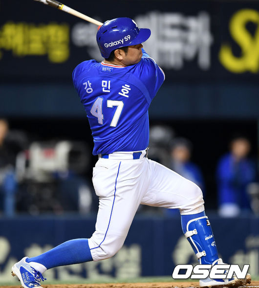 강민호(삼성)가 사흘 만에 대포 가동을 재개했다. 강민호는 1일 창원 마산구장에서 열린 NC와의 홈경기에서 3-0으로 앞선 4회 중월 솔로 아치를 그렸다. 시즌 12호째.