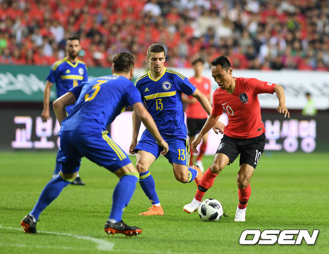 신태용 감독이 이끄는 축구 대표팀(FIFA랭킹 61위)은 지난 1일 오후 전주월드컵경기장서 열린 보스니아 헤르체고비나(41위)와 A매치 평가전서 에딘 비슈카에게 해트트릭을 허용하며 1-3으로 졌다. 한국은 이날 경기를 끝으로 국내 두 차례 평가전을 마무리했다. 팬들 앞에서 2018 러시아 월드컵 선전을 다짐하고 응원을 당부하는 출정식도 겸했다.