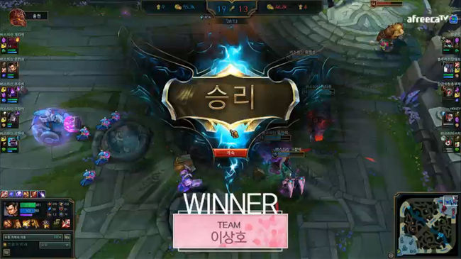 기막힌 난타전 끝에 이상호팀이 여신미쓰리를 꺾고 아프리카TV LOL 멸망전 본선에 합류했다.