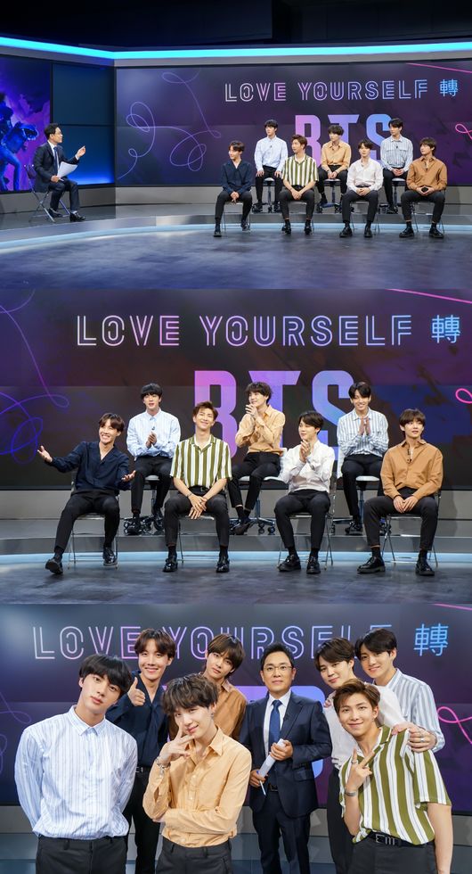 이어 방탄소년단은 간단한 소개와 함께 김 앵커의 질문에 시종일관 에너지 넘치는 모습으로 일곱 명 각자 개성 있는 멘트로 화답했다. 빌보드 시상식의 뒷이야기, 그리고 그들이 ‘노래’를 통해서 말하고자 한 메시지는 무엇인지, ‘방탄소년단’이 아니었다면 무슨 일을 했을까 등 어디에서도 들을 수 없었던 진솔한 인터뷰가 이어졌다.