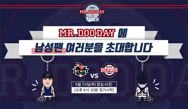 두산 베어스가 14일 잠실구장에서 열리는 kt와의 홈경기에서 '미스터두데이(Mr.Doo Day)' 이벤트를 개최한다.