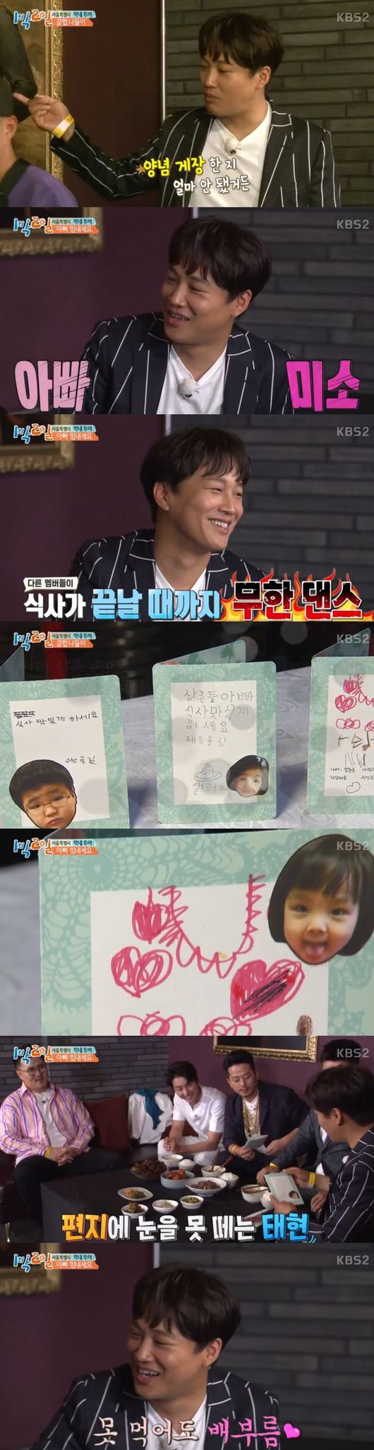 김종민은 차태현 아내가 만든 양념게장을 먹은 뒤 "양념게장이 내 인생 베스트3다"라고 극찬했다. 여기에 차태현의 자녀 수찬이, 태은이, 수진이는 멤버들에게 손편지를 보내 감동을 더했다.