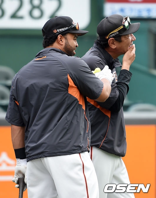 [사진] 지난해 한화 시절 로사리오와 나카시마 코치.
