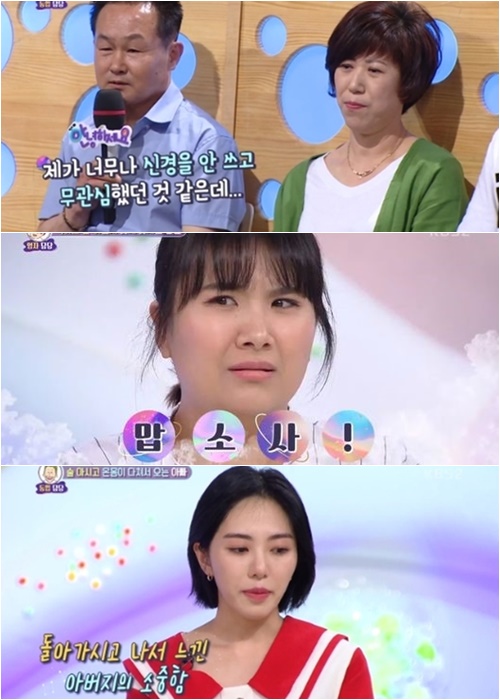 민아 역시 북받쳐 오르는 감정을 주체 못하고 눈물을 흘렸다. 민아는 "저는 지금 제 곁에 아버지가 안 계시다. 아버지가 가시고 나서 아버지의 소중함을 더 크게 느꼈다. 가족을 생각해서라도 바뀌셨으면 좋겠다"고 진심어린 조언을 전했다.