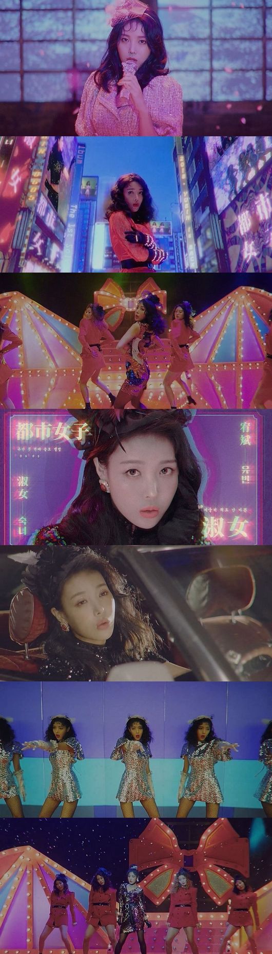 '숙녀' 뮤직비디오에선 유빈의 화려한 비주얼이 인상적이다. 분주한 도시 속 유빈의 힙한 분위기가 시선을 사로잡는다.