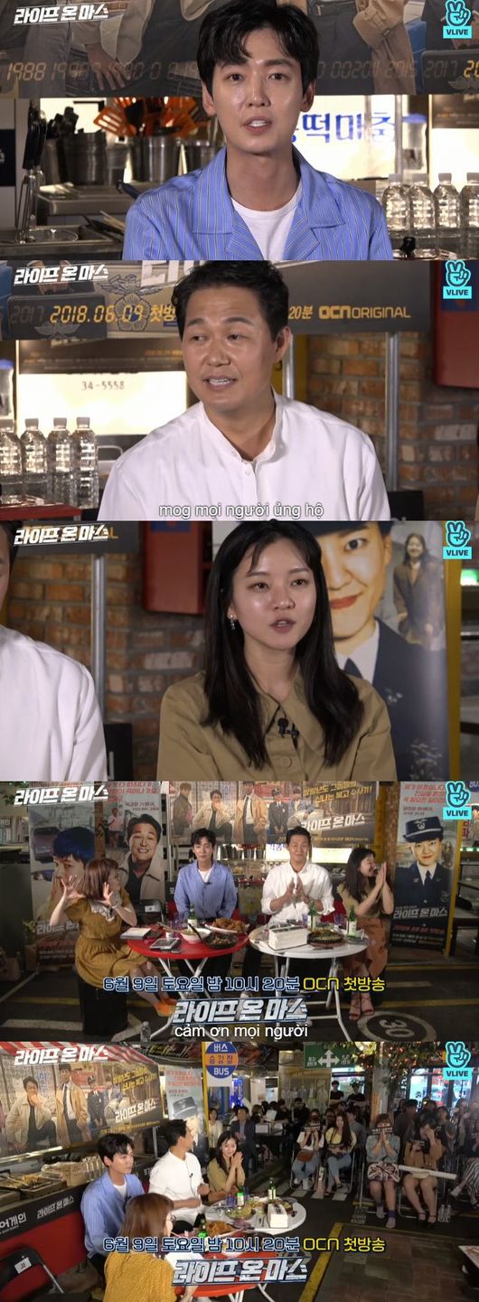5일 포털사이트 네이버 V앱을 통해 방송된 OCN 새 토일드라마 '라이프 온 마스'(극본 이대일/ 연출 이정효, 이하 라온마) 드라마 토크 LIVE에서는 MC 박슬기와 대화를 나누는 배우 정경호, 박성웅, 고아성의 모습이 전파를 탔다.