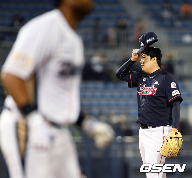 이후 나성범에게 2S를 먼저 잡은 뒤에는 몸에 맞는 공을 허용하면서 밀어내기 사구로 추가 실점했다. 분위기는 싸늘해졌다. 이후 스크럭스에게도 조정훈은 밀어내기 볼넷을 내줬다.