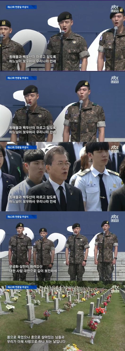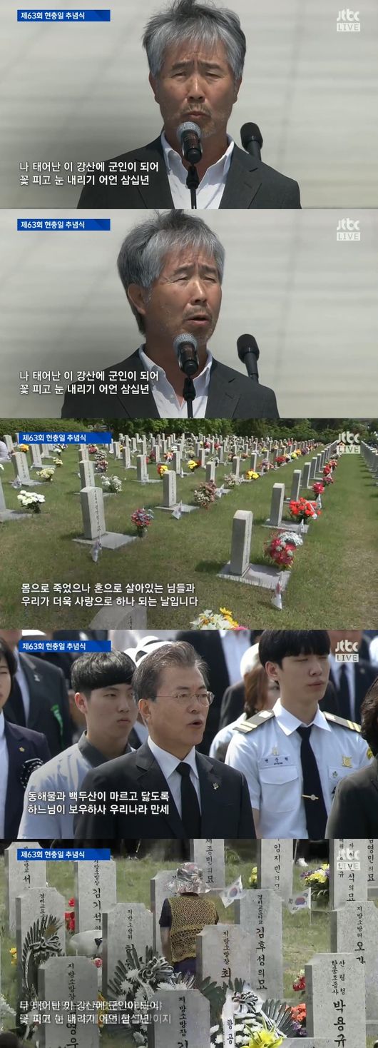 이날 현충일 추념식은 독립유공자와 참전유공자뿐만 아니라 의사상자, 독도 의용수비대, 소방 공무원, 순직공무원의 묘역가 조성돼 있는 국립대전현충원에서 진행했다. 이곳에서 현충일 추념식이 치러지는 건 1999년 이후 19년 만이다.