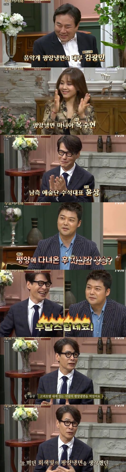 윤상은 평양 다녀온 후 자신감 있지 않냐고 묻자 "한끼 먹고 답을 말씀드릴 수 없지만 유일하게 학습이 필요했던 냉면 노력을 해야 참맛을 느낄 수 있다"면서 아쉽게도 옥류관은 가지 못했다고 했다.