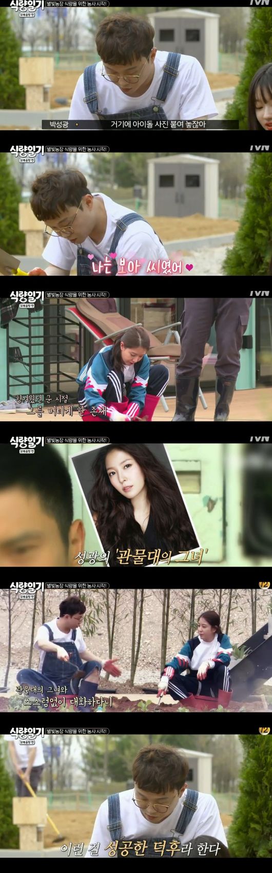 이수근은 작물을 잘 키우기 위해선 두둑사이 깊게 흠이 진 고랑을 잘 만들어야한다고 전했다. 이어 두둑에 씨를 심는다는 것. 어설프지만 차근차근 고랑을 만들어냈다. 고랑 만들기가 끝나고, 유아와 태용은 대파를 심기로 했다. 하지만 무지한 탓에 박성광에게 SOS를 요청했다.