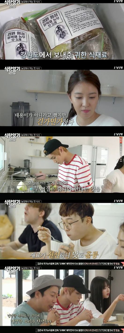이렇게 요리를 완성한 태용, 농장 식구들은 태용의 매력에 놀랐다. 태용은 "보아누나가 다 했다"며 겸손한 모습을 보였다. 드디어 첫 식사를 함께 나는 농장식구들, 재료가 훌륭한 만큼, 맛도 훌륭했다. 이수근은 "건강한 식재료라, 건강한 맛이 난다"며 감탄했다.