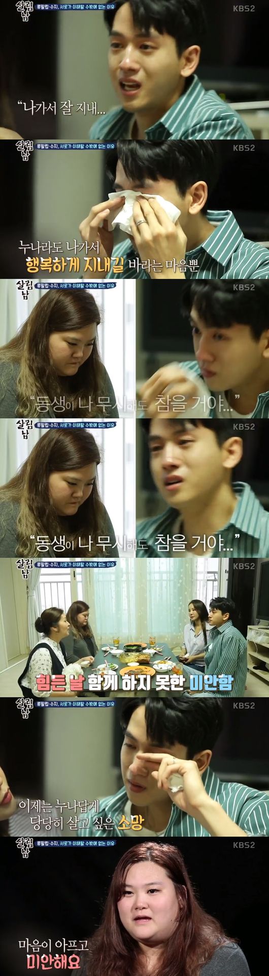 이어 "수지가 막상 나가니까 참 그때는 희안한게 '그래 너라도 가라'는 마음이었다. 힘들면 내가 혼자 힘든 게 낫지 진짜 수지를 도망가게 하고 싶었다. 그래서 누나가 하나도 안 미웠다. '나가서 잘 지내라. 돌아오지 말아라'는 마음이었다. 차라리 나 혼자 힘들고 싶었다"고 눈물을 흘렸다.