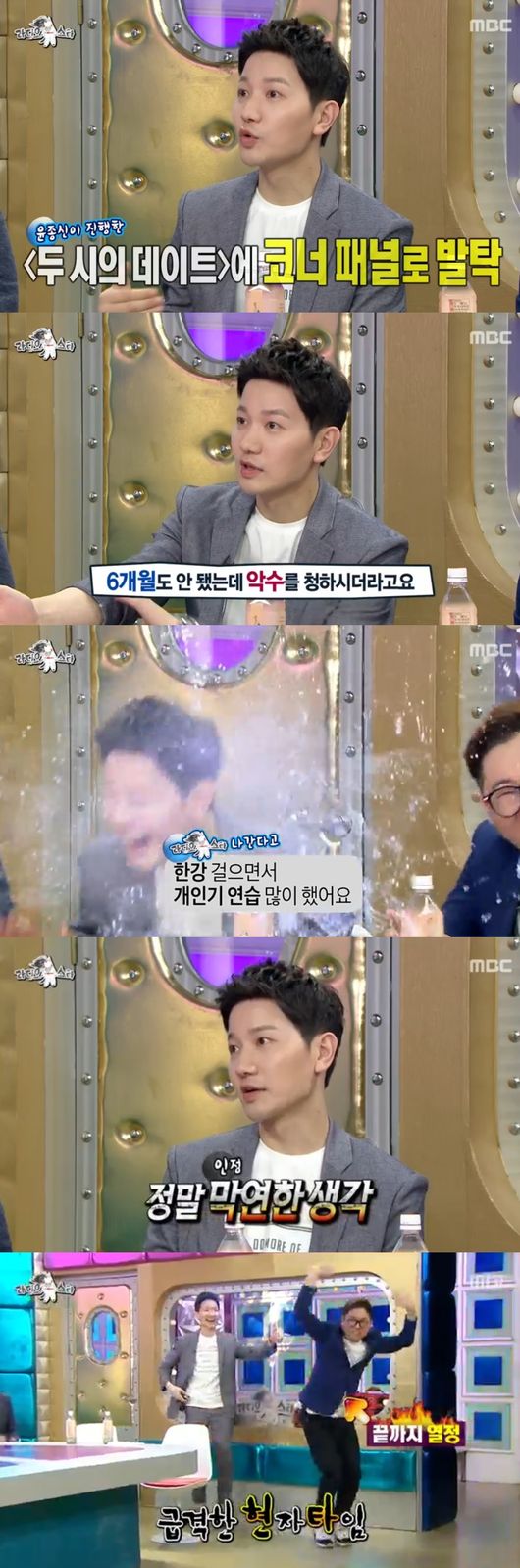 김정근이 혹독한 재입사 신고식을 치뤘다. MBC 입사 십수년만에 처음으로 '라디오 스타'에 출연한 김정근. 그는 프리 선언 이후 일이 없어서 육아에 전념한 일과 재입사 후 아내의 달라진 표정을 밝혔다. 이날 김정근은 김구라에게 혹독하게 당하며 진땀을 흘렸다.