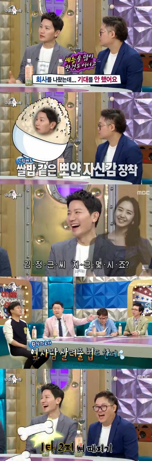 6일 방송된 MBC '라디오 스타'에는 프리 선언을 했다가 최근 다시 MBC로 복귀한 김정근이 출연했다. 김정근은 프리 선언을 한 이유에 대해 "내가 예능을 많이 하지도 않았고 해서 사람들이 많이 불러줄 거라고는 예상 안했다. 하지만 나같이 담담하고 밥같은 사람도 필요한 곳이 있지 않을까 했는데, 나와 보니 나같은 사람이 너무 많더라"고 말해 웃음을 유발했다.