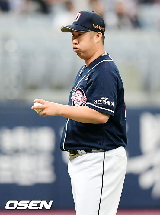 오랜만에 승리를 올렸지만 유희관의 표정은 썩 밝지 못했다.