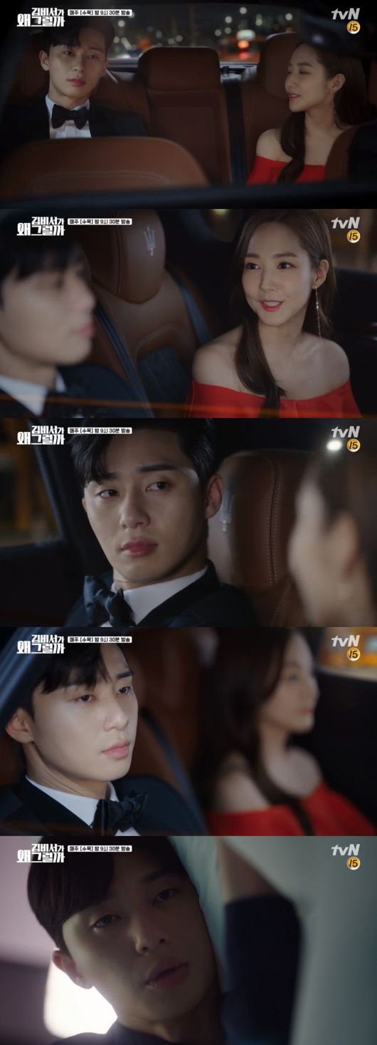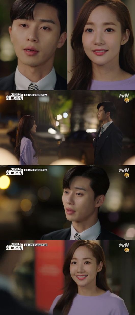 지난 6일 방송된 tvN 수목드라마 ‘김비서가 왜 그럴까’(극본 정은영, 연출 박준화) 1회에서는 이영준(박서준 분)의 비서였던 김미소(박민영 분)가 9년 만에 일을 그만두겠다고 하고 이영준이 김미소에게 프러포즈를 하는 내용이 그려졌다.