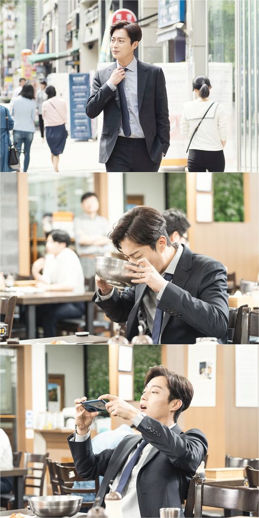 사진 속 윤두준(구대영 역)은 시원한 냉면 육수를 깔끔하게 들이킨 후 전매특허 빈 그릇 찍기까지, 완벽한 식샤님 표 냉면 먹방의 정석을 보여주고 있다. 그가 빈 그릇 사진을 찍는다는 것은 곧 식사가 만족스러웠음을 의미하는 터. 특별하고도 반가운 그의 귀환은 이렇게 단 세 장의 사진만으로도 설명 가능하다.