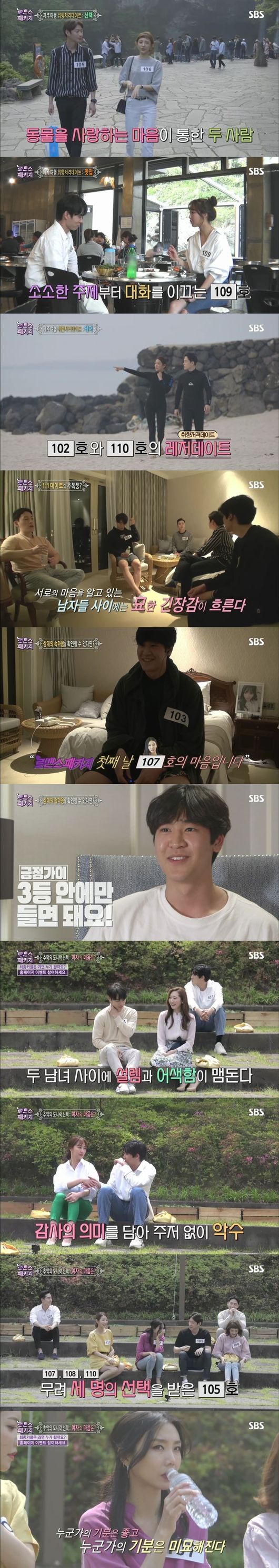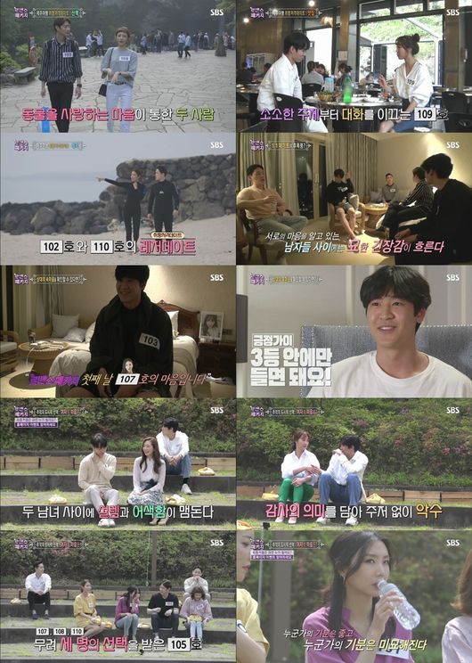 105호는 108호와 산책 데이트를 즐기며 첫 만남 식사에서 호의를 거절했던 것에 대한 오해를 풀었다. 두 사람은 또 대화를 나누는 도중 동물을 좋아한다는 공통된 관심사를 발견하고 한층 더 친밀해지는 모습을 보였다. 흑돼지 구이집에서 데이트에 나선 104호와 109호는 서로에게 애칭을 붙여주며 피터팬-팅커벨 커플이 됐다. 대화할 기회가 없었던 두 사람은 일대일 데이트 이후 서로에게 호감을 나타냈다. ‘진지남’ 102호와 110호는 패들보드를 탄 뒤 컵라면을 먹으며 ‘알쏭달쏭’한 데이트를 즐겼다.