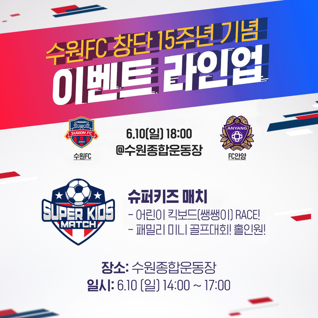 경기 전 오후 2시부터는 슈퍼키즈 슈퍼매치 운영본부와 함께하는 ‘2018 Super kids match in 수원’ 대회를 주경기장 트랙에서 개최할 예정이다.