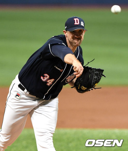 린드블럼은 8회 2사 2루의 위기서 김하성을 중견수 뜬공으로 잡았다. 8회까지 무실점의 퍼펙트 피칭을 한 그는 마운드서 내려왔다. / jasonseo34@osen.co.kr
